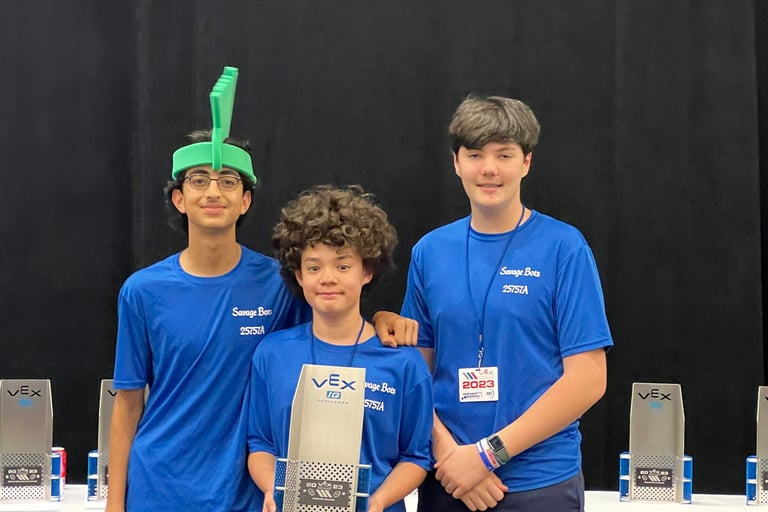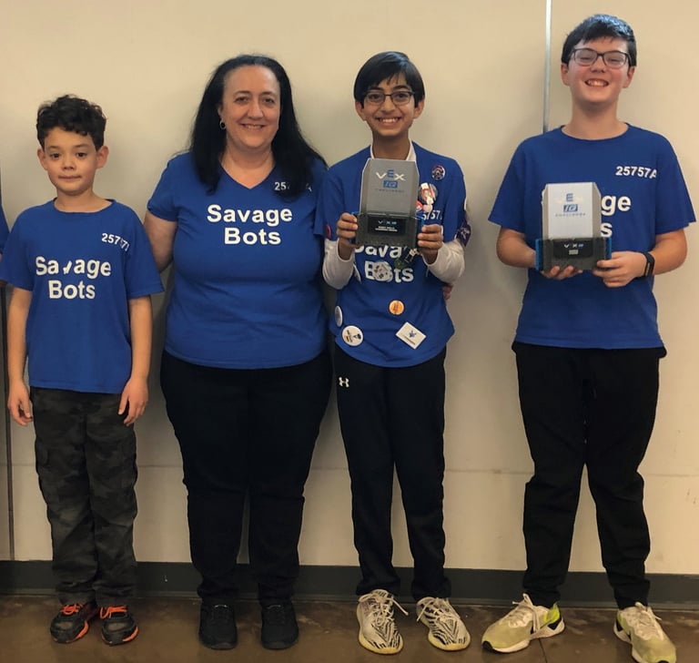 In 2018 my parents started a Vex IQ Robotics team for me (Giovanni) and some of my 4th grade friends. Thus, Savage Bots (25757A) was born. I became the team captain and principal coder. Our team competed for 5 seasons and was one of the top teams in Virginia every year. We qualified for the Vex World Championship all 5 seasons and placed 4th in the World in 2021.