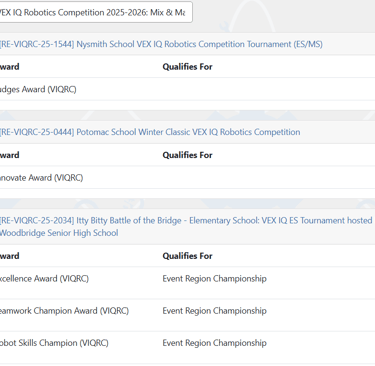 They ended up winning the Trifecta at Itty Bitty! They placed first in the finals winning Teamwork. Plus they finished first in the Skills challenge and won the Excellence award (combination of our robot's performance, plus their interview, plus their engineering notebook)
